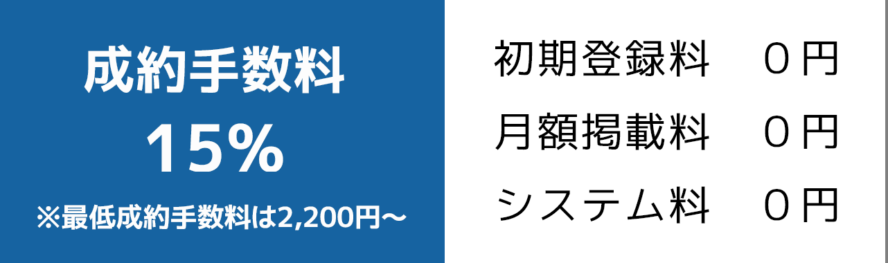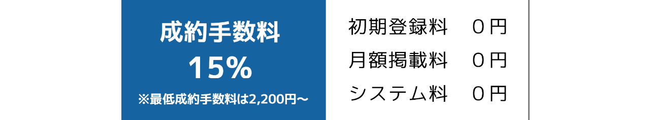 業界最安値の仲介料!完全成果報酬で費用は成果の15%のみとなります。